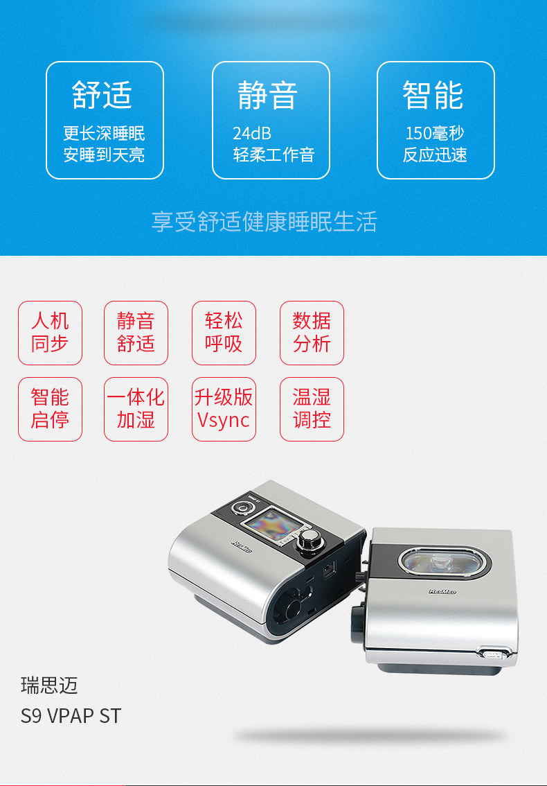 首页 > 产品展示 > 各品牌呼吸机 > 瑞思迈呼吸机S9VPAP-ST双水平家用慢阻肺排二氧化碳