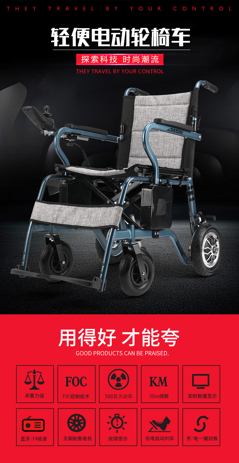 首页 > 产品展示 > 各品牌电动轮椅 > 电动轮椅无刷电机轻便型智能刹车老年人代步车