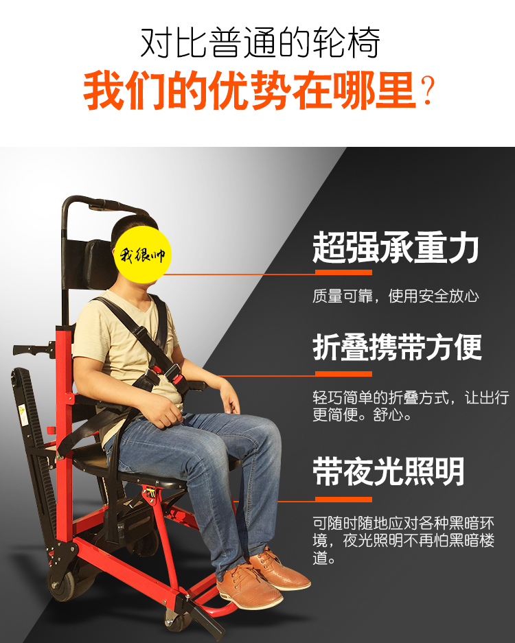 首页 > 产品展示 > 电动爬楼轮椅 > 电动爬楼轮椅上楼轮椅市区送货上门欢迎前来体验