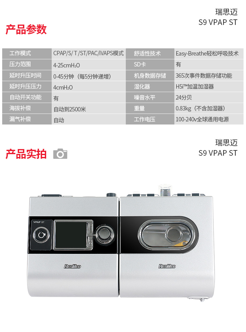 首页 > 产品展示 > 各品牌呼吸机 > 瑞思迈呼吸机S9VPAP-ST双水平家用慢阻肺排二氧化碳