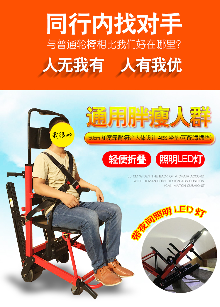 首页 > 产品展示 > 电动爬楼轮椅 > 电动爬楼轮椅上楼轮椅市区送货上门欢迎前来体验